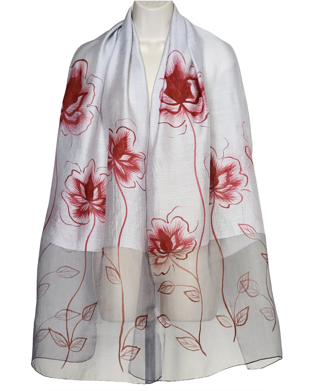 -Gray with Red Hand Painted Flowers Silk Modal Organza Hand Loomed Material