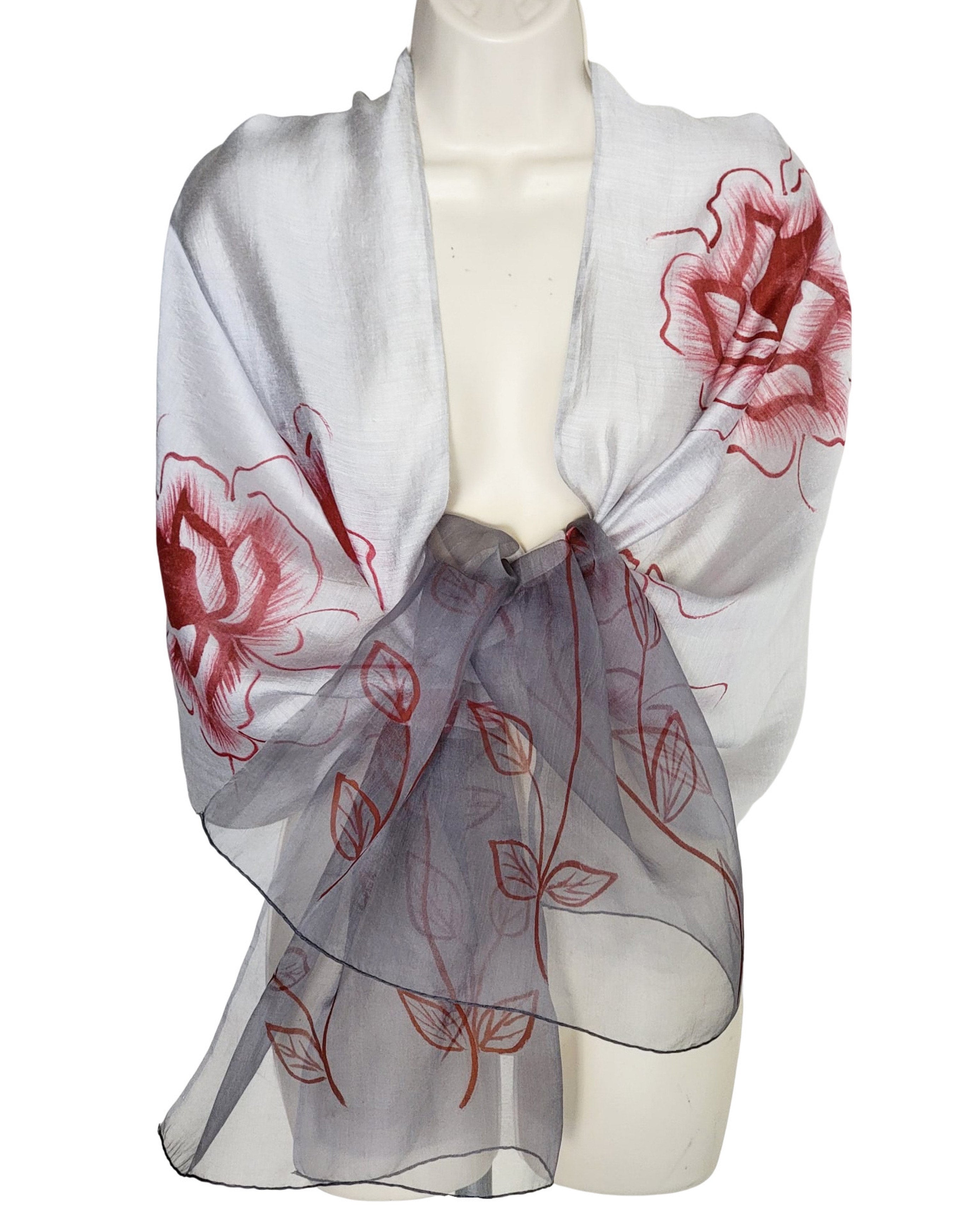Corsica (Gray with Red Flowers) Scarf